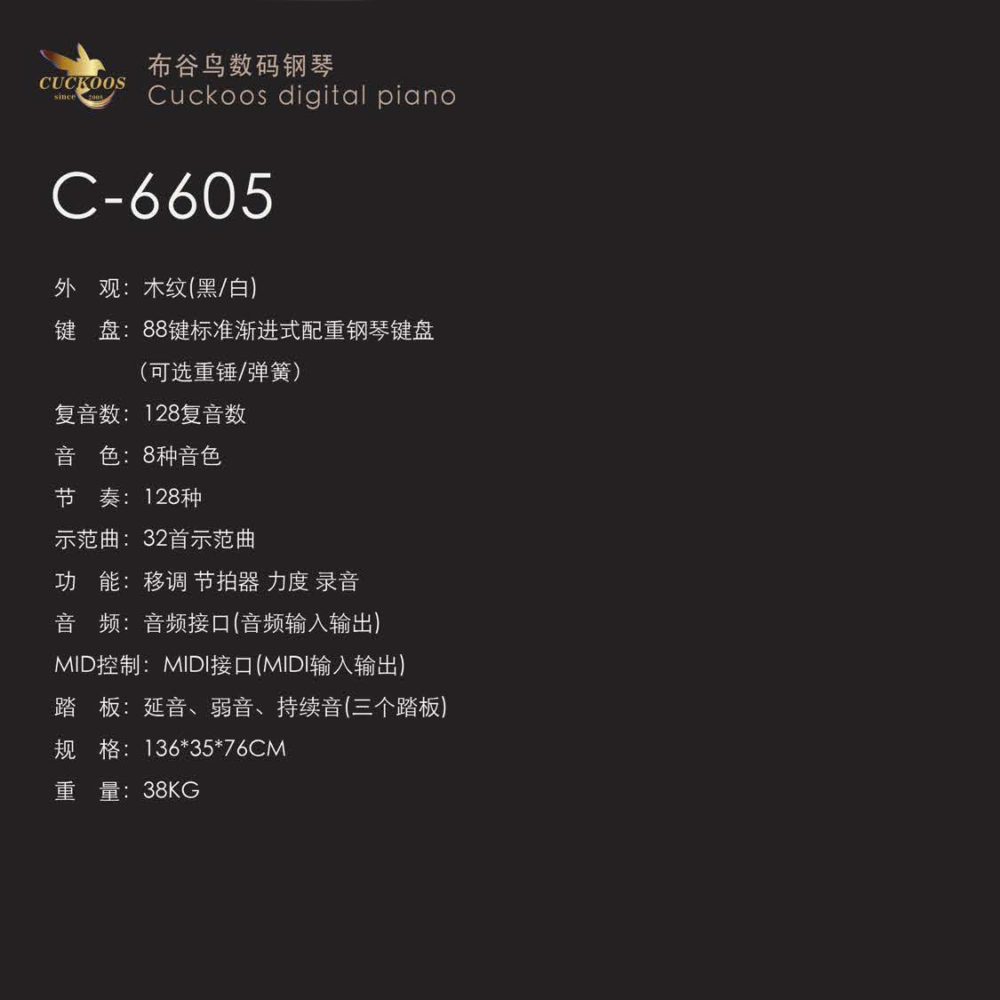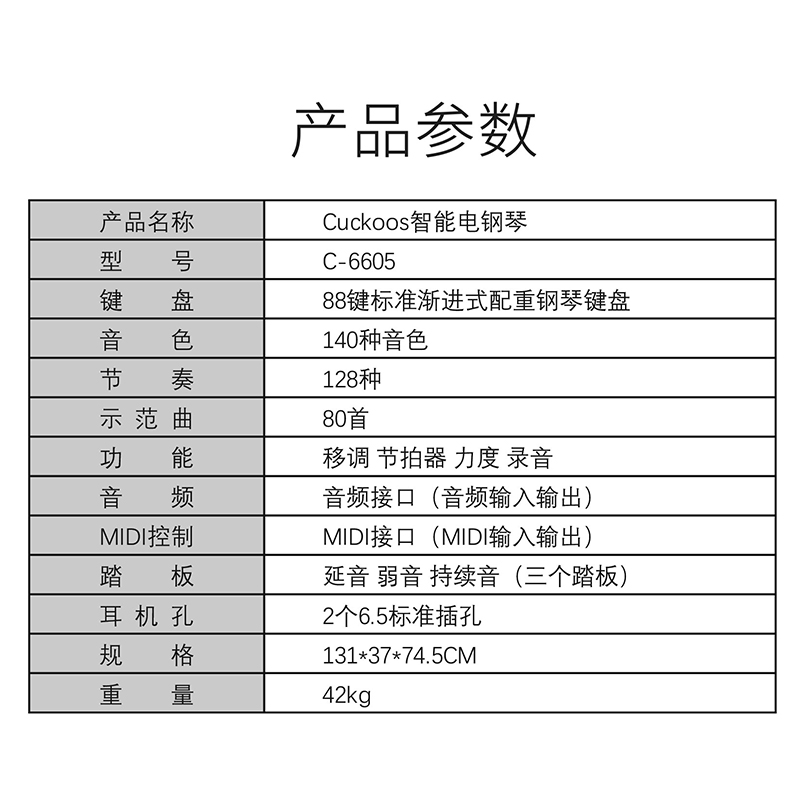 CUCKOOS布谷鸟电钢琴 C-6605 木纹 白色(重锤键)
