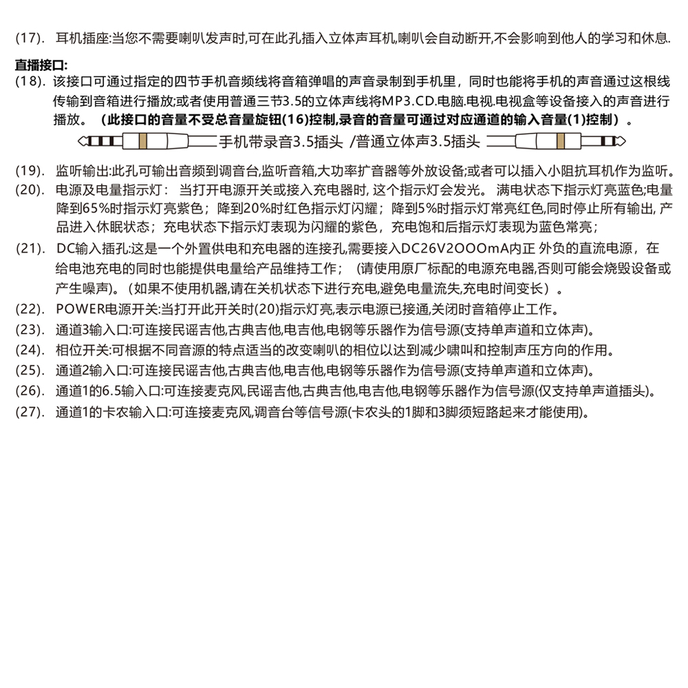 - 输出孔2:手机直播视频内录(3.5插孔)