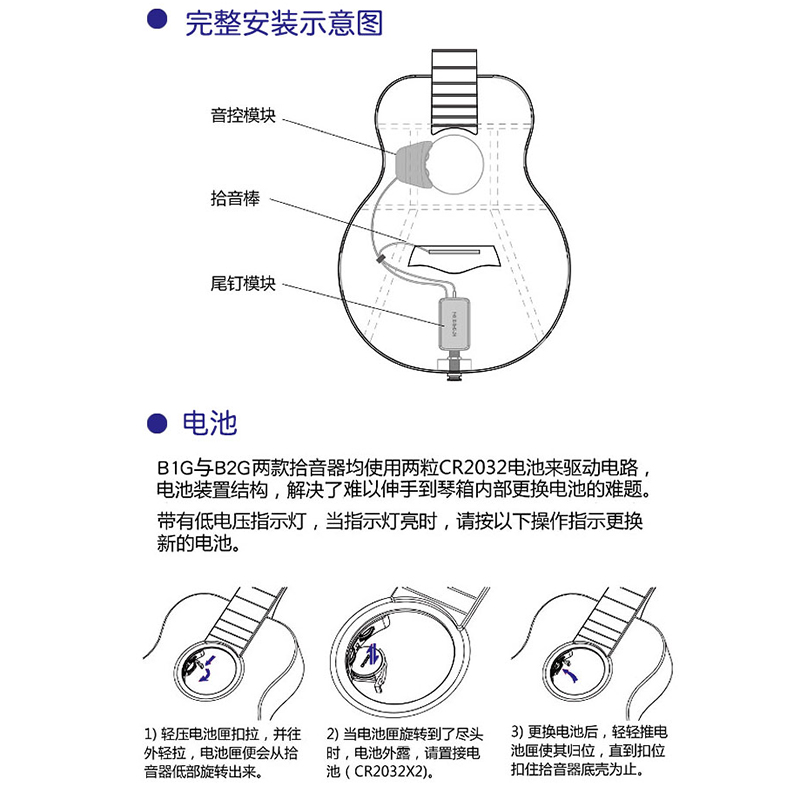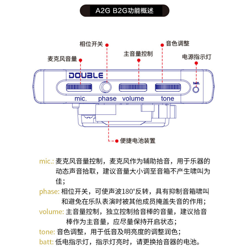 DOUBLE B2G拾音器(民谣古典通用)