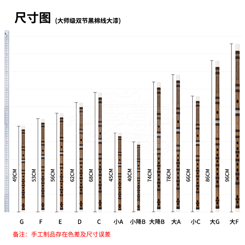 中国度壹品牌 大师级双节黑棉线大漆手工精品竹笛G调