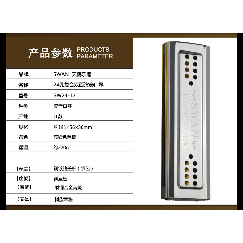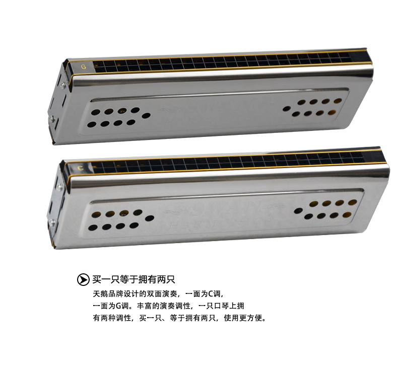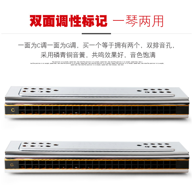 TIANE G调24孔双面复音铜座演奏口琴