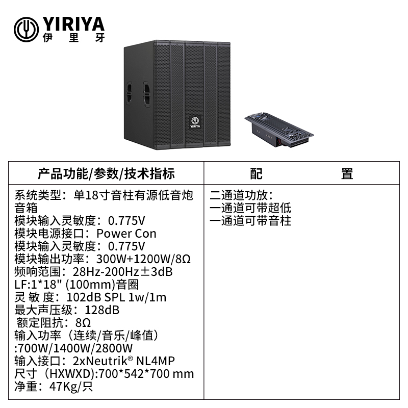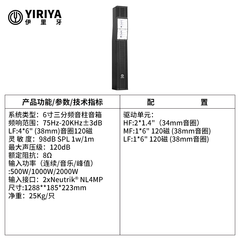 YIRIYA伊里牙 6寸三分频配低音18寸 音柱系统 B118