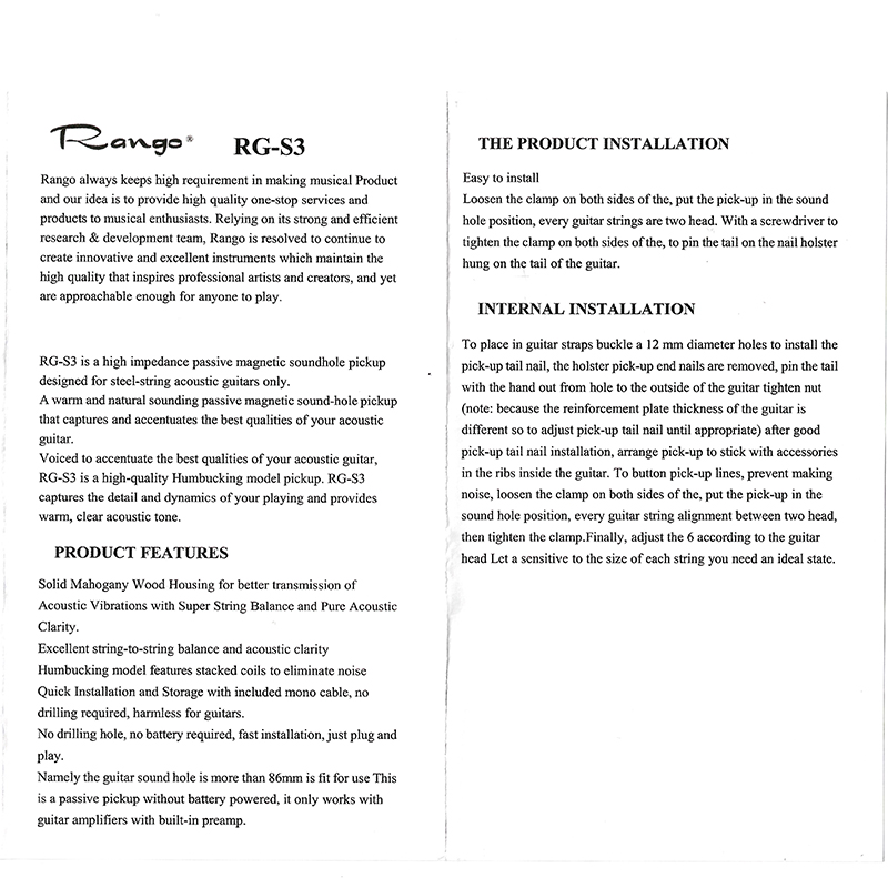 RANGO RG-S3 拾音器(民谣专用)