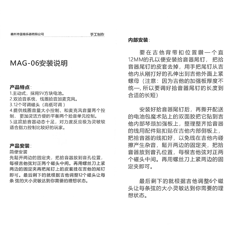 产品名:RANGO MAG-06 拾音器(民谣专用)