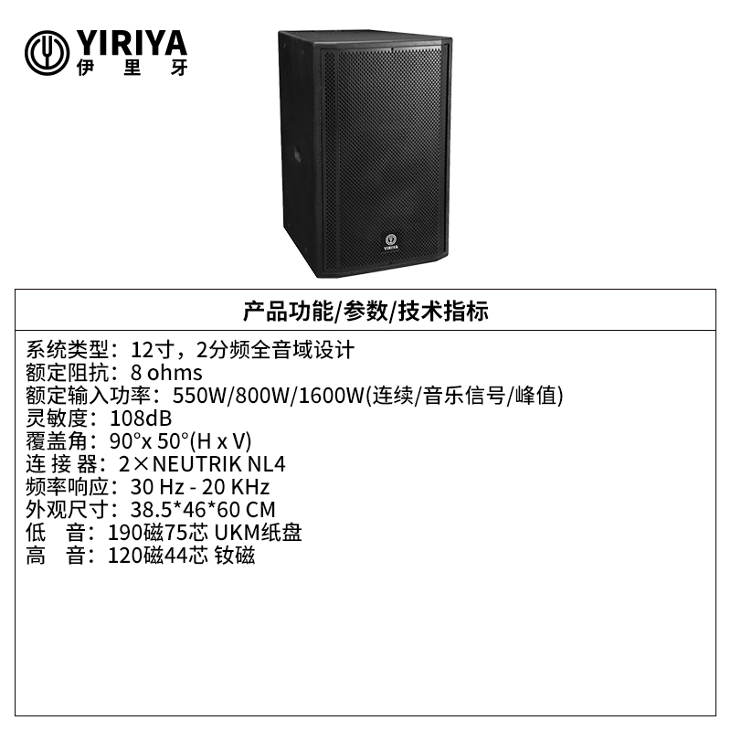 YIRIYA伊里牙 12寸两分频全音域酒吧音响 P12