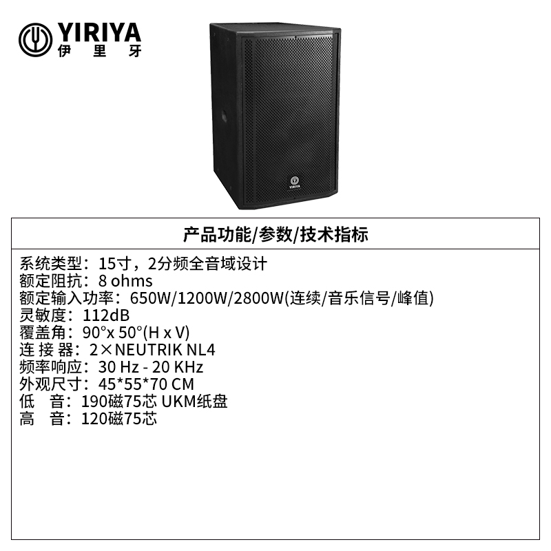 YIRIYA伊里牙 15寸两分频全音域酒吧音响 P15