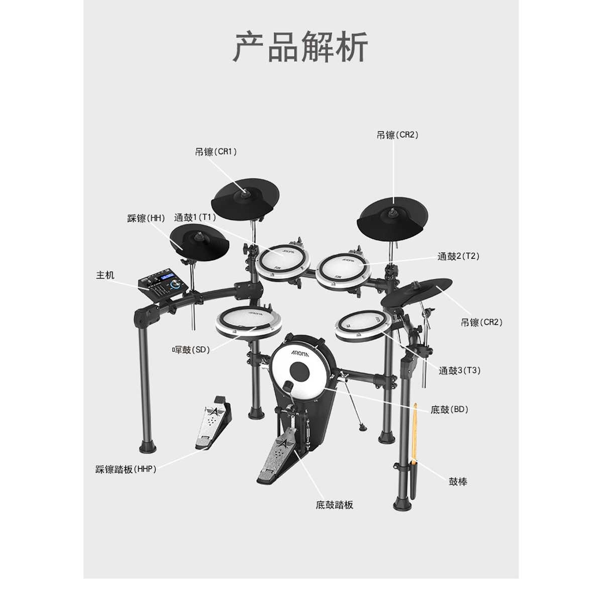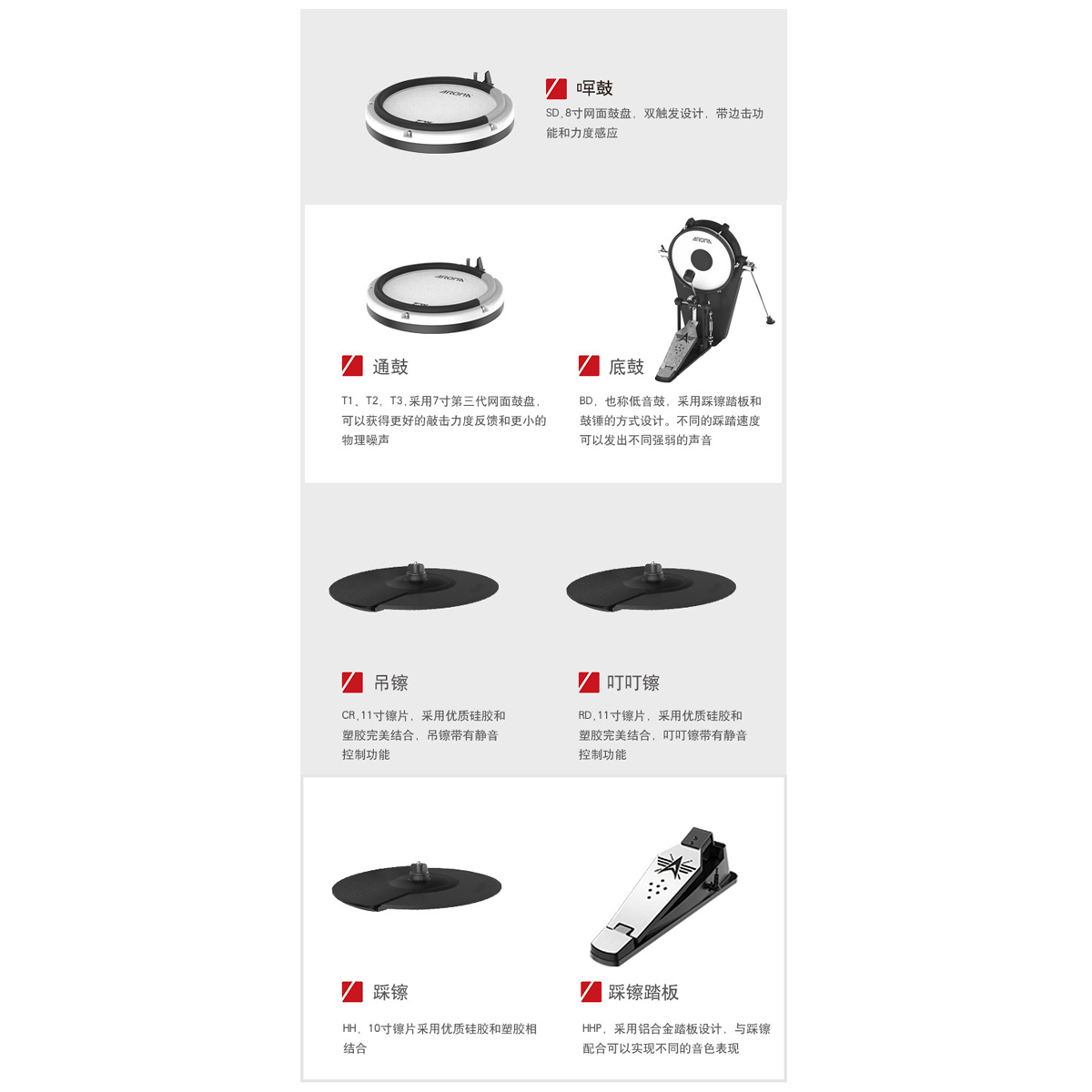 底鼓踏板:10寸网面大底鼓(可拆卸)
