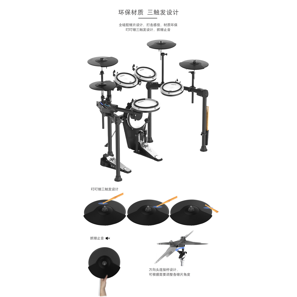 吊镲:11寸半包硅胶双触发