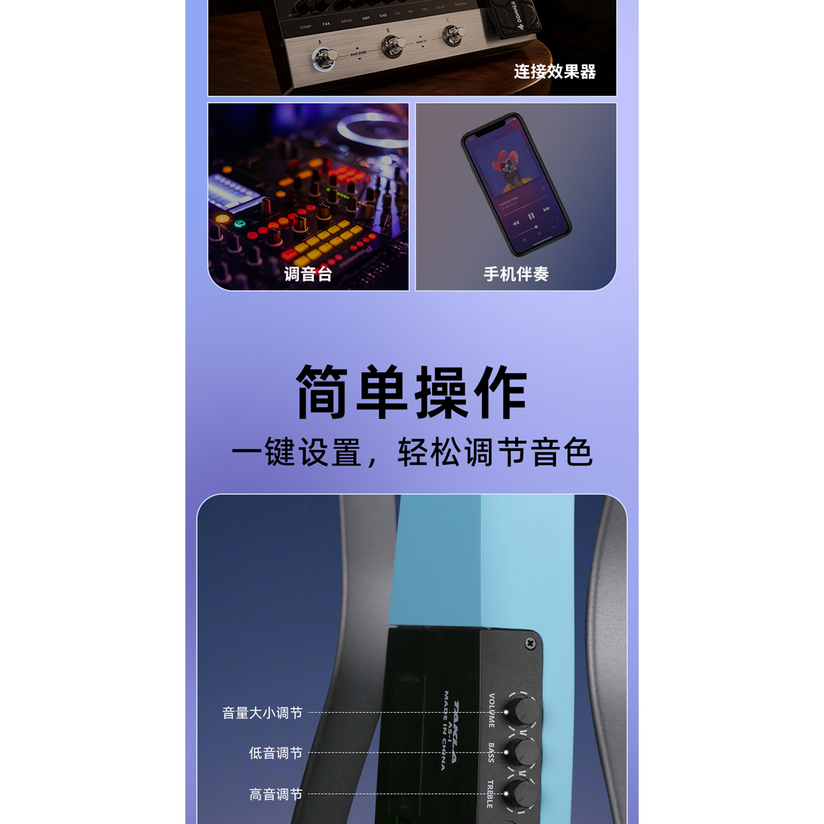 OTIS奥司联名TK 静音智能吉他 蓝色