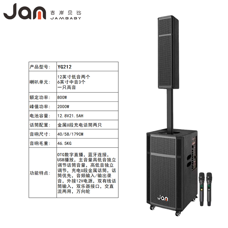 JAM吉岸贝比 2000瓦大功率充电娱乐音响YG212-800W