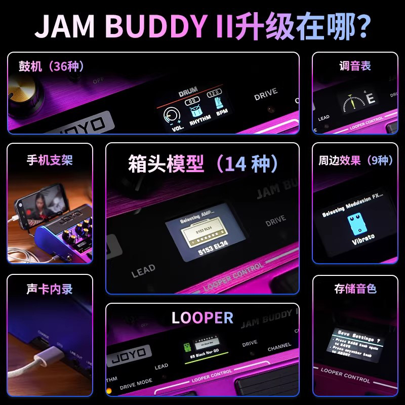 JOYO JAM BUDDY 电吉他音箱效果器一体机 二代粉色