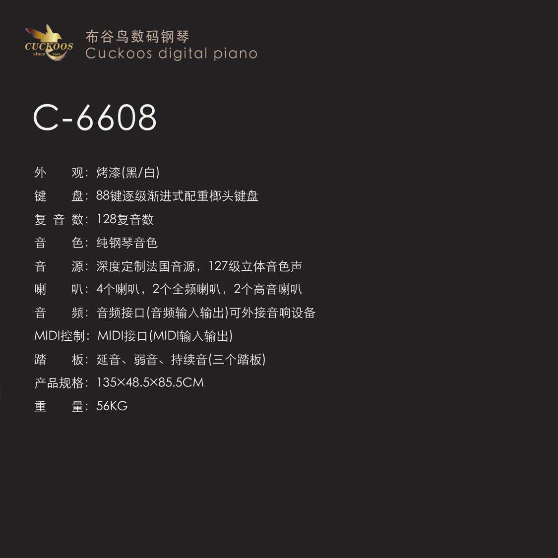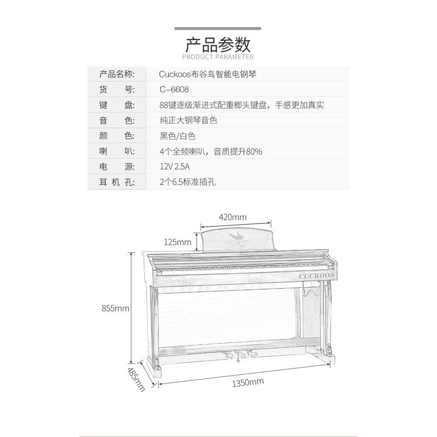 CUCKOOS布谷鸟电钢琴 C-6608 白色